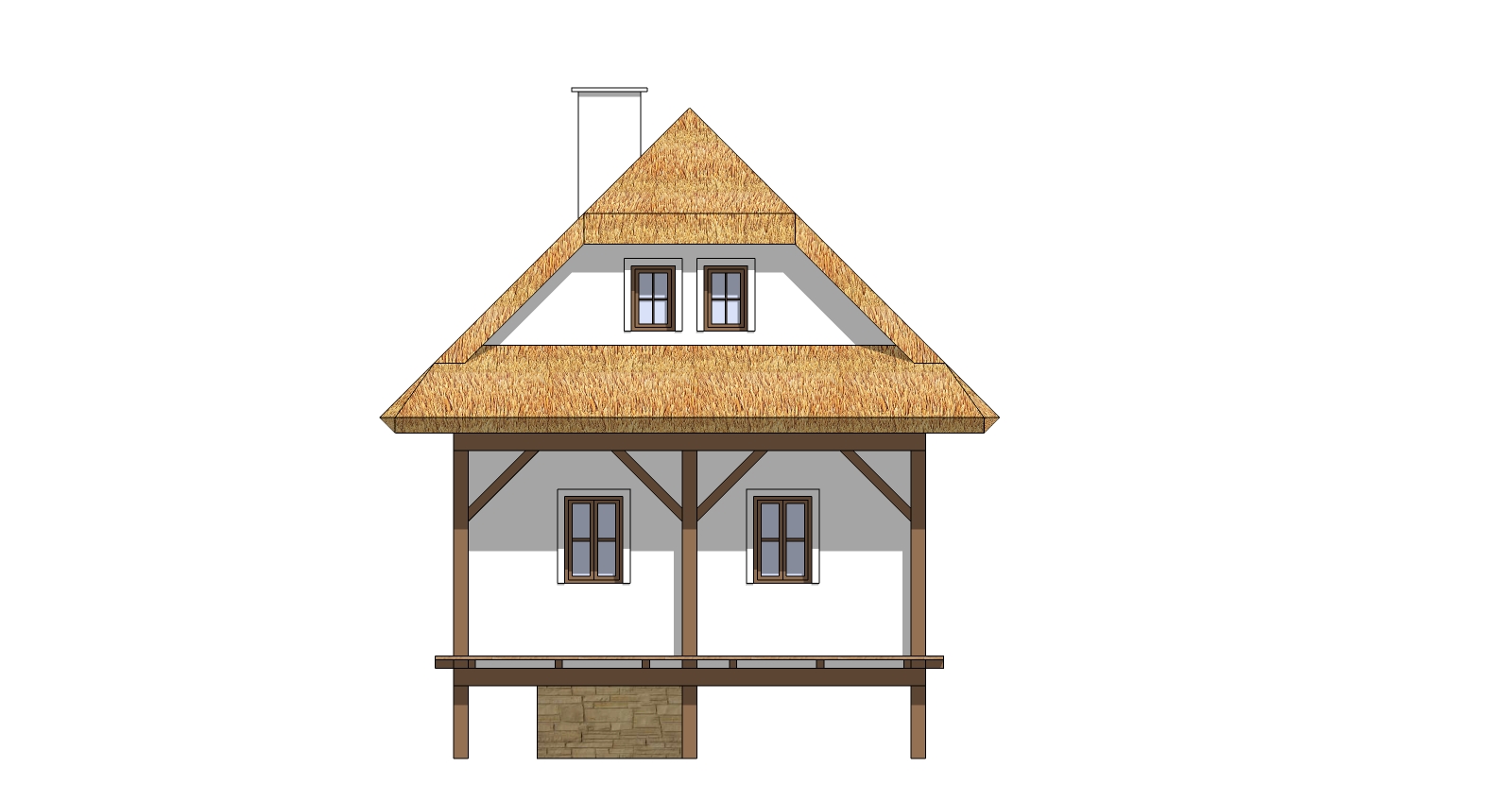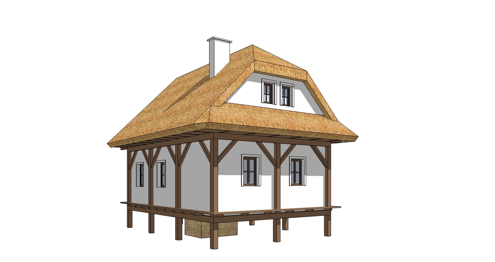 konstrukce: založení stavby nad terénem,dřevěná sloupková konstrukce s výplní ze slaměných balíků